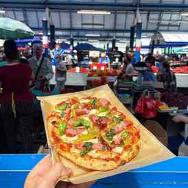 Сервис - плохой( посадка 50% зала, но при этом вас не посадят, ссылаются на «резерв», ок, заказываем пинсу с собой (хотя... знаем есть «на вынос» её невозможно - слишком мокрая, слишком холодная изначально). Ждем 20 мин, пинса готова, из «резерва» никто не пришёл, хотя на 3х столах время резерва прошло, никто не предложил сесть за стол, админа нет, стафф либо не думает об этом либо делает это намеренно. По итогу едим мокрую и холодную пинсу на скамейке в парке, перепачканные и расстроенные потерей 30 рублей (объективно это дорого, она слишком маленькая стала, какая то шагреневая кожа